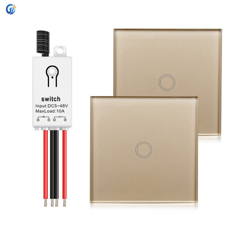 GLC 5v-48v Dc 12v Wireless Remote Control Switch Lamp Waterproof Removable Glass Panel Smart Wall Touch Switch Receiver Kit 10A